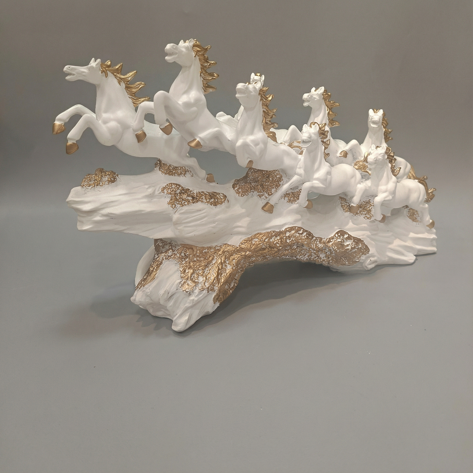 • ELEGANT DESIGN: Features 8 running horses in glossy white marble finish atop a luxurious golden wave base, creating a stunning visual statement for any space
