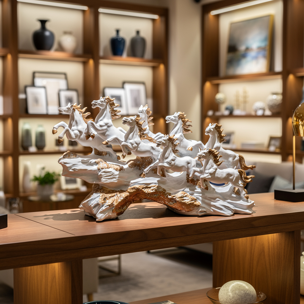 Premium Quality Resin Material: Made with high-grade durable resin, this horse showpiece features intricate detailing on manes, hooves, and expressions, offering long-lasting strength, lightweight handling, and superior craftsmanship.